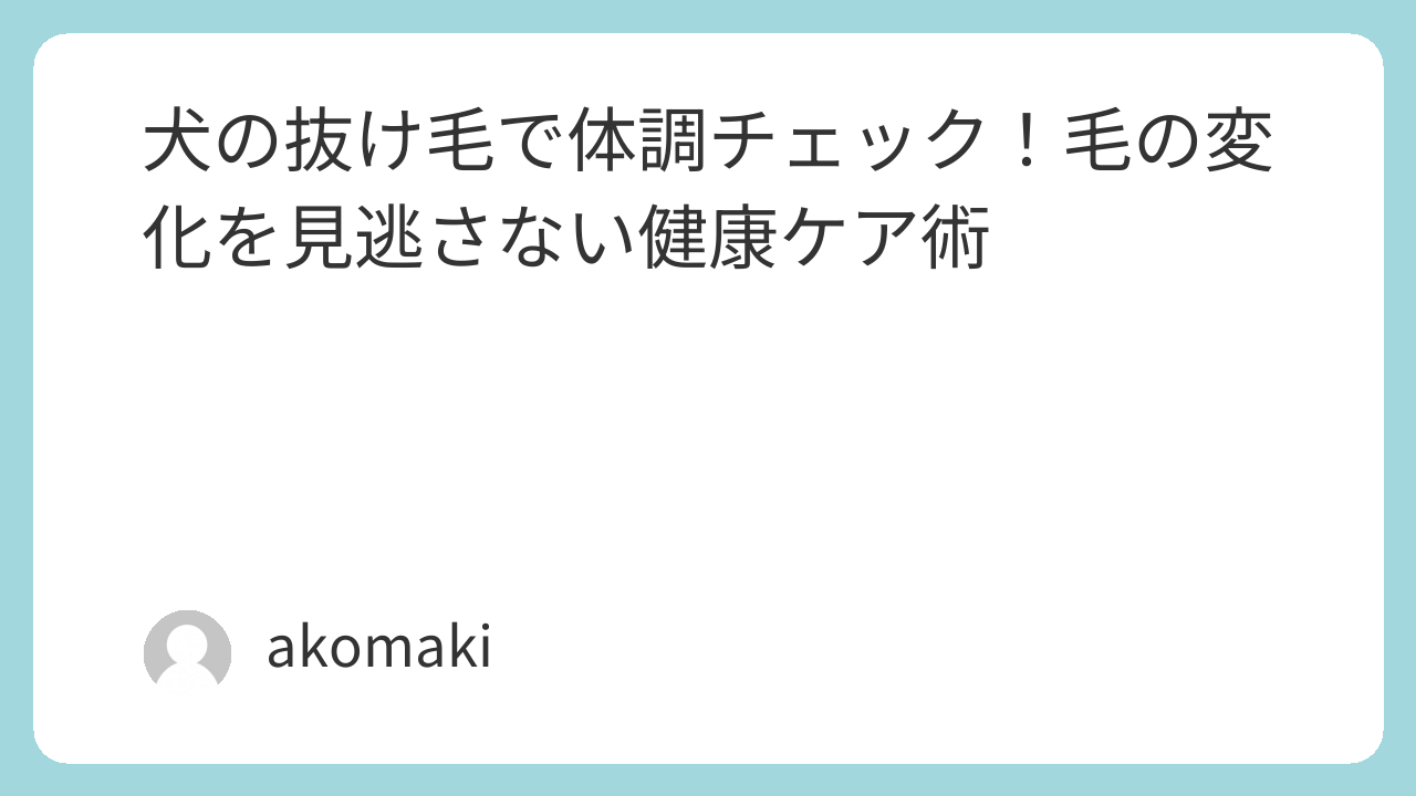 抜け毛の量・毛質・艶の変化を日常的に観察し、食事・栄養・ケア方法を見直すことが、愛犬の健康を守る近道です。