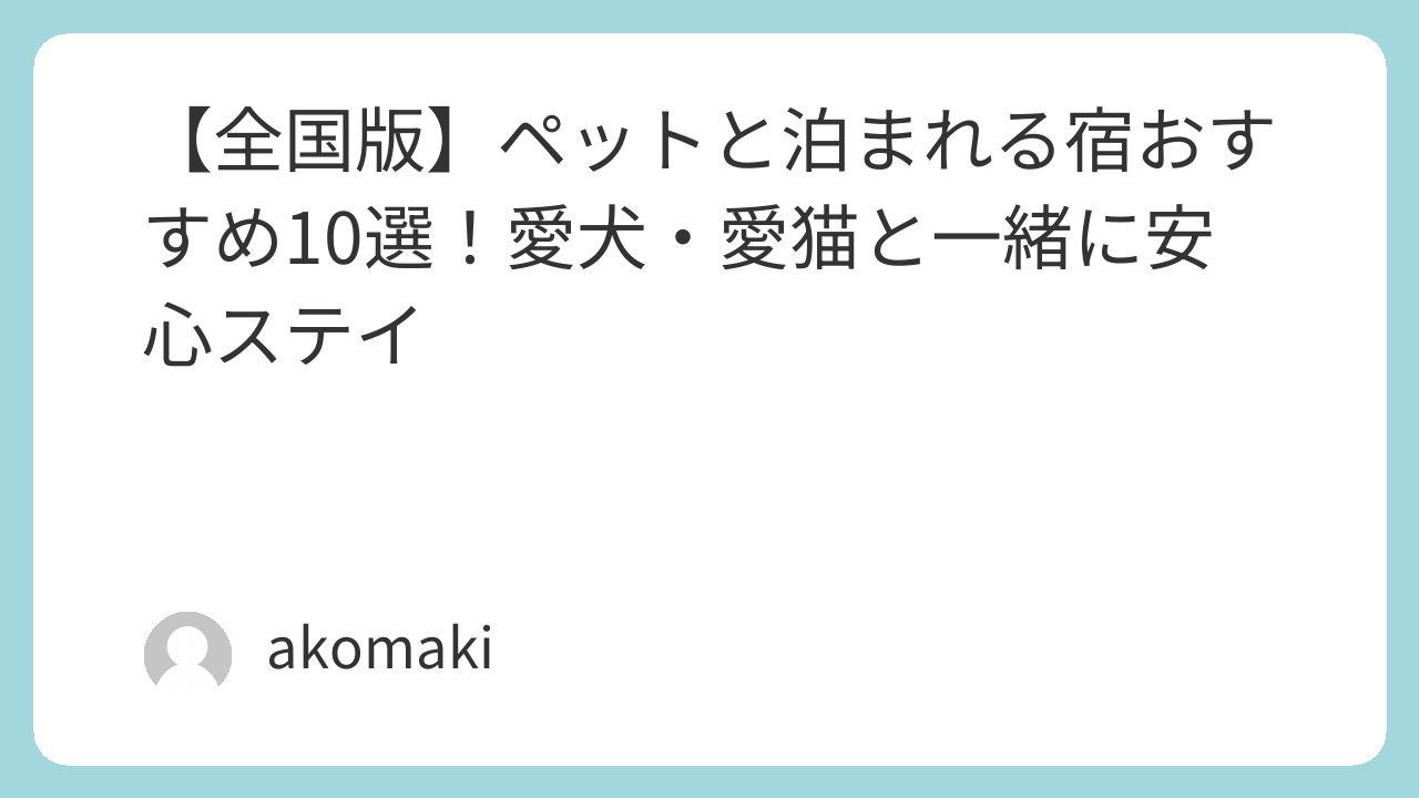• 特徴:全国のペット可宿泊施設を一括検索。レビューも豊富。