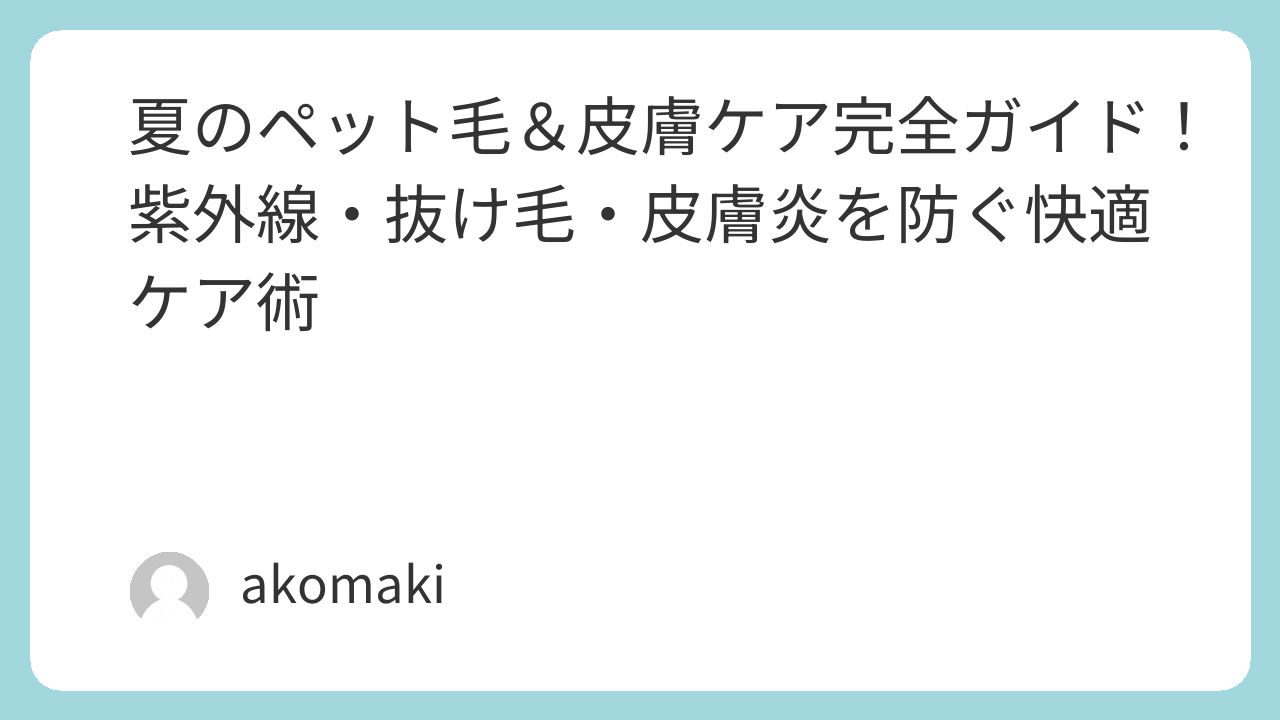紫外線対策・保湿・食事・掃除・冷房管理など、ペットの快適な夏を守るポイントをまとめました。